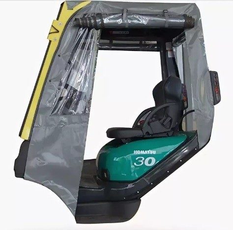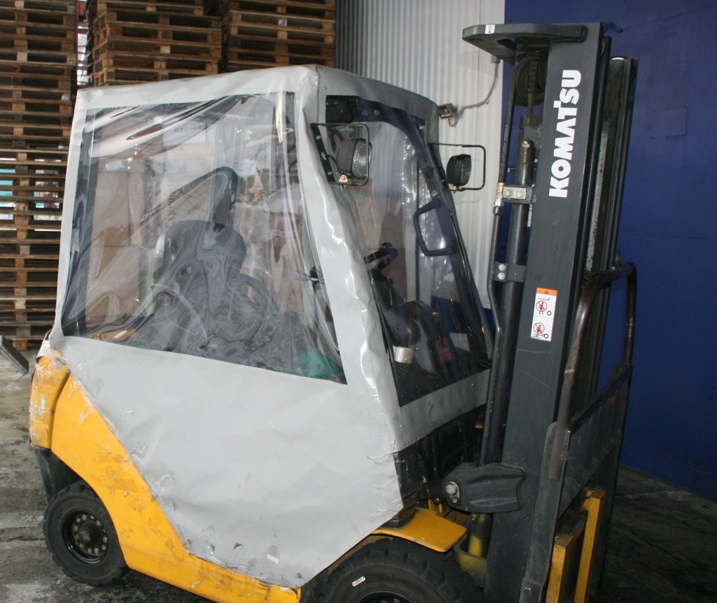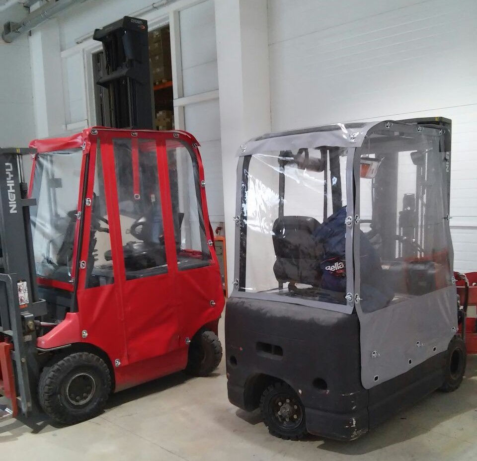 Тенты для складской техники производятся из прочного износостойкого материала, рассчитанного на длительную интенсивную эксплуатацию. Чехол легко надевается на кабину погрузчика и снимается без использования специального инструмента.